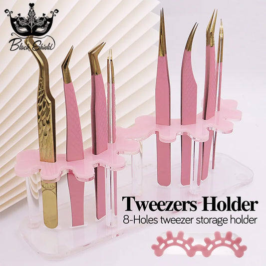 Suporte de acrílico para armazenamento de pinças de cílios, com 8 orifícios, prateleira conveniente para pinças, suporte para extensão de cílios, ferramenta de maquiagem e tatuagem