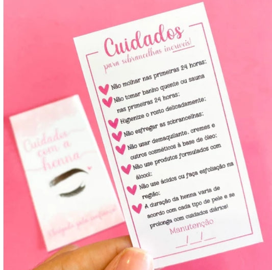 100 Cartões tag de cuidados com a henna, sobrancelha