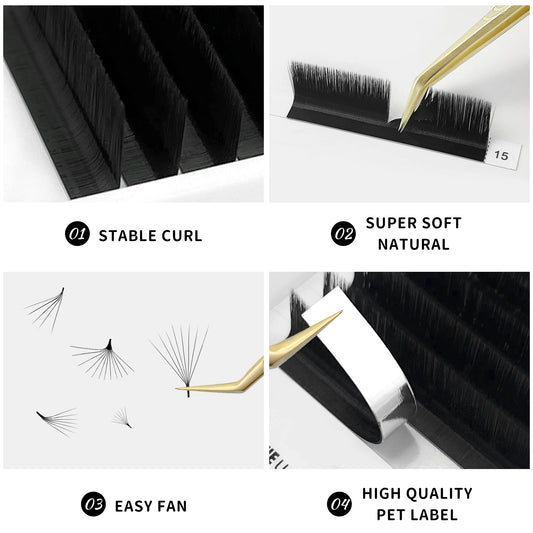 Abonnie cílios com curvatura M/L, fácil de criar volume, cílios mega volume, fãs automáticos de fácil aplicação, efeito de florescimento para volume