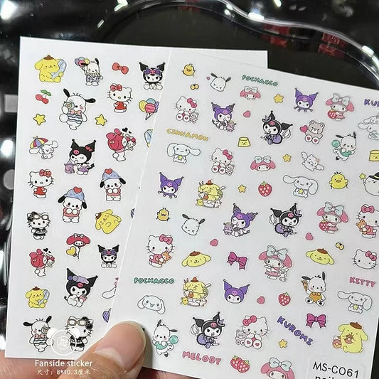 Adesivos para Unhas 3D Sanrio Kawaii - Cinnamoroll, Hello Kitty, My Melody, Kuromi, Decoração para Unhas