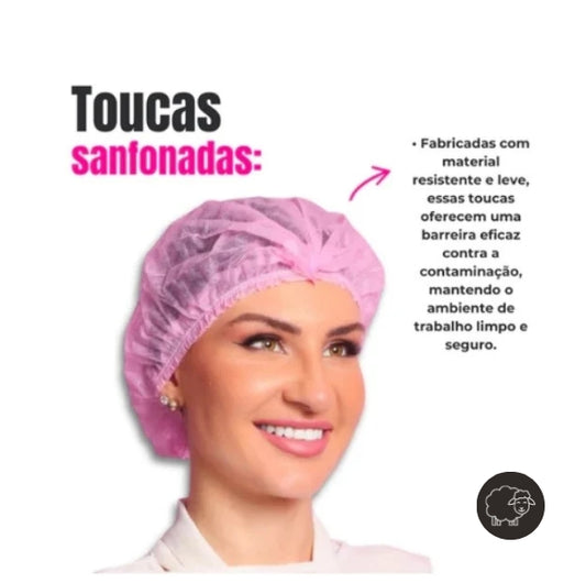 Kit 100 unidades de Touca Rosa + 150 Máscaras Rosa Descartável
