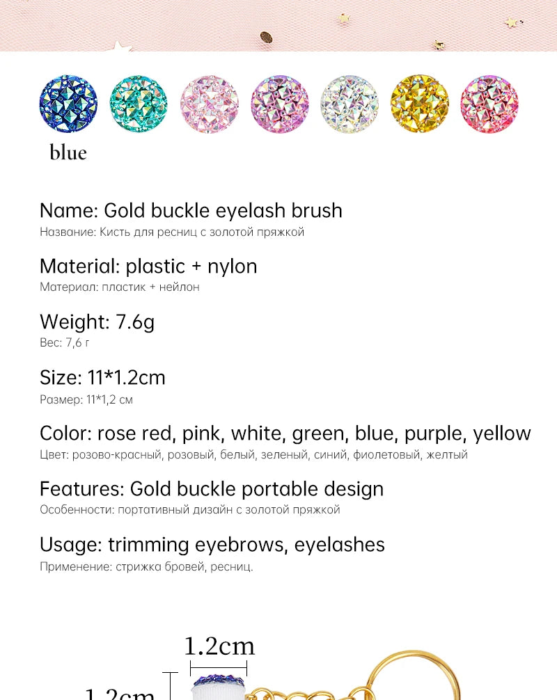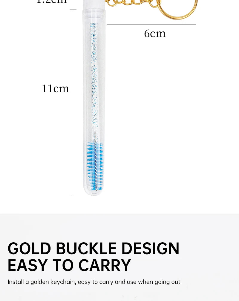 10 Peças Escova de Cílios em Tubo com Chaveiro Dourado e Glitter