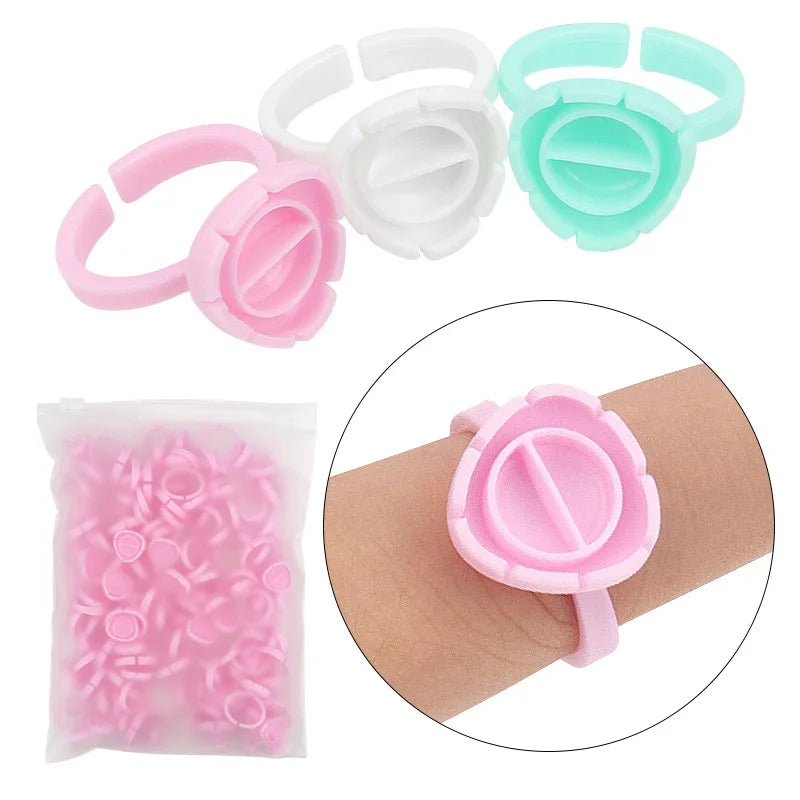 100 Peças/Embalagem de Anéis para Cola de Extensão de Cílios Descartáveis