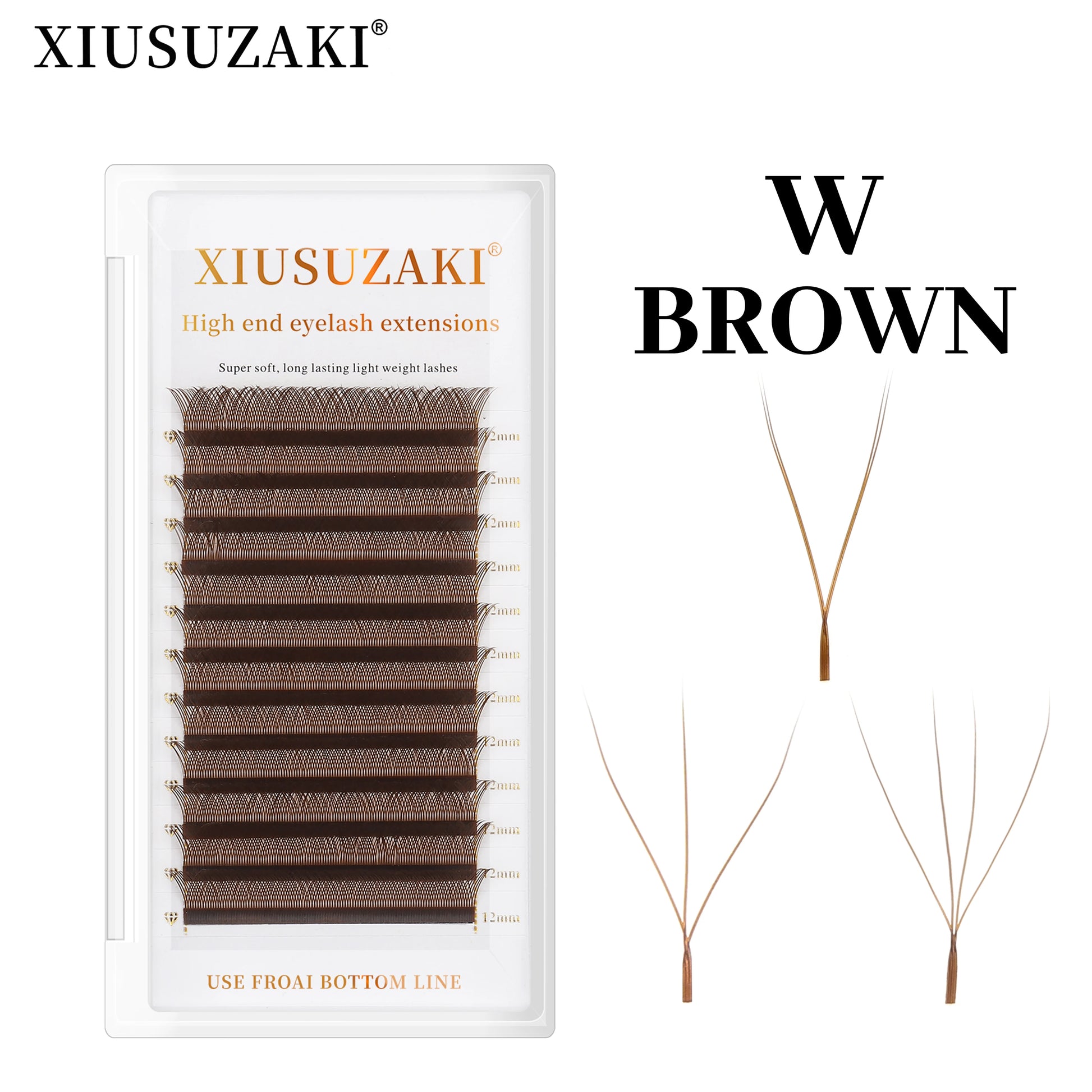 Cílios Extensores Brown W em Forma de W, 2D, 3D, 4D, Fãs Prontos Automaticamente em Flor, Cílios Individuais Naturais, Macios e Leves