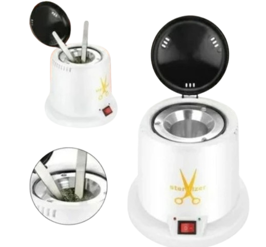 Esterilizador de cristais para alicates, pinças, limas, tesouras etc. Graças a Elevadíssima temperatura atingida por este aparelho - 250º Os objetos que pretende esterilizar devem estar no seu interior apenas entre 20 a 30 segundos. Com esta exposição tão curta e devido a ação das microesferas nos instrumentos os efeitos negativos causados pelas temperaturas elevadas são eliminados. Voltagem: 110v