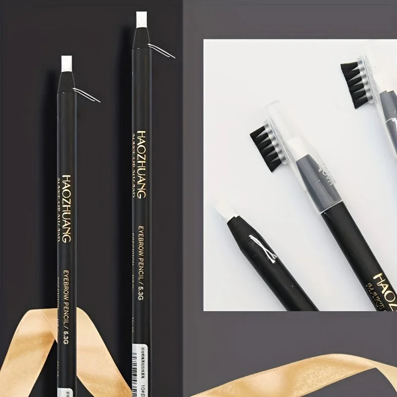 Lápis de Sobrancelha com Quadro de Posicionamento para Tatuagem - Cabeça de Escova para Sobrancelha, À Prova d'Água, Linha Branca, Ferramentas de Maquiagem para Artistas e Uso Diário