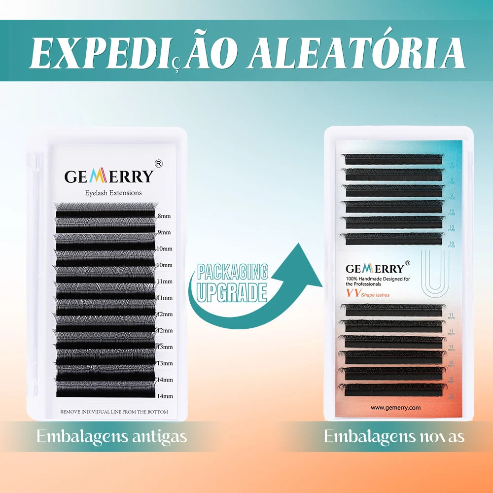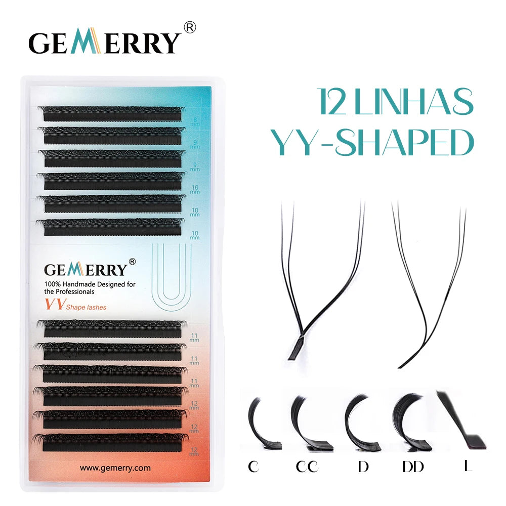 Extensões de Cílios GEMERRY YY, Curva em L, Olho de Raposa, Dicas Duplas, Volume Premade em Forma de Ventilador 2D, Tipo YY, Natural, Matte Black, Suprimentos para Cílios