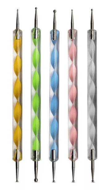 Instrumentos com esferas de diversos tamanhos nas pontas, ideais para criar bolas em artes, desenhos e pinturas. Facilitam a criação de formas e desenhos como florzinhas e bolinhas de diferentes tamanhos.