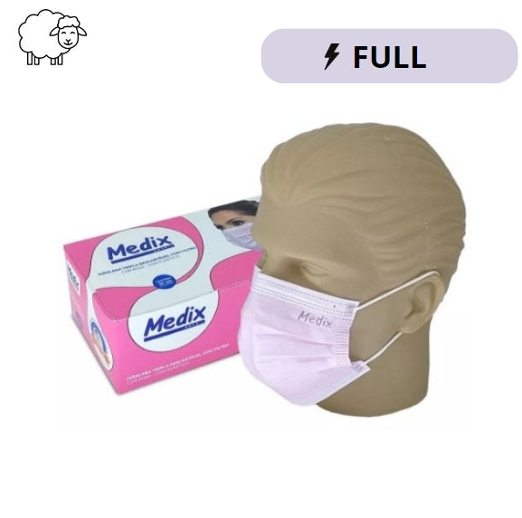 Máscara descartável tripla C clipe nasal rosa 50 unidades