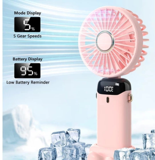 Mini Ventilador Portátil de Mão com 5 Modos Pequeno Dobrável digital De Escritório Presente USB De 3000MA