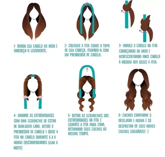 Modelador De Cetim Cachos Heatless Curls Ondas Cabelo Preto