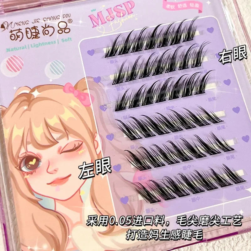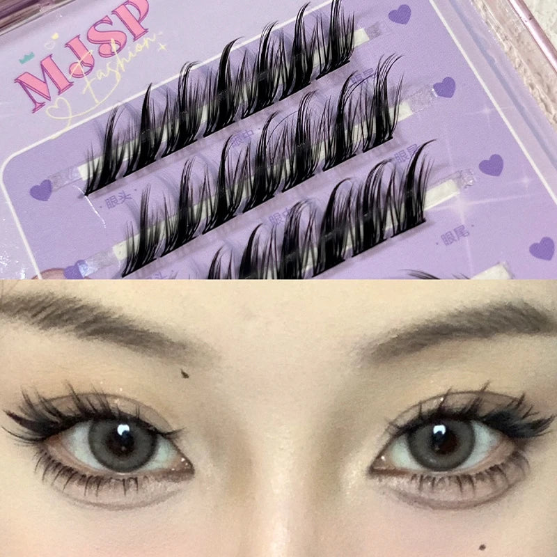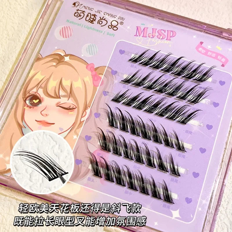 Skew Flying Fox Cílios Postiços Falsos em Tufo Único, Extensão Híbrida Segmentada, Efeito Natural de Olhos de Raposa, Ferramenta de Maquiagem para Cílios Individuais